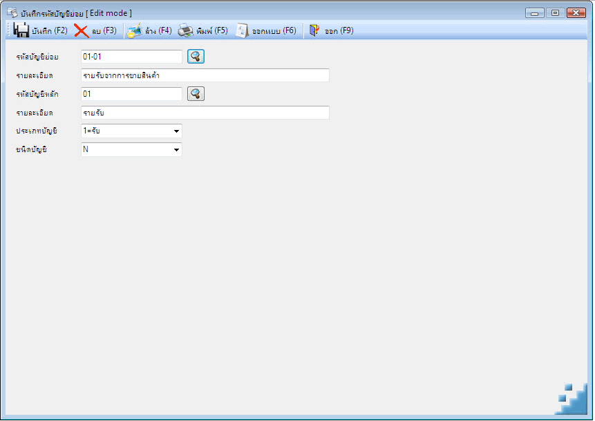 - บันทึกรหัสบัญชีหลัก
