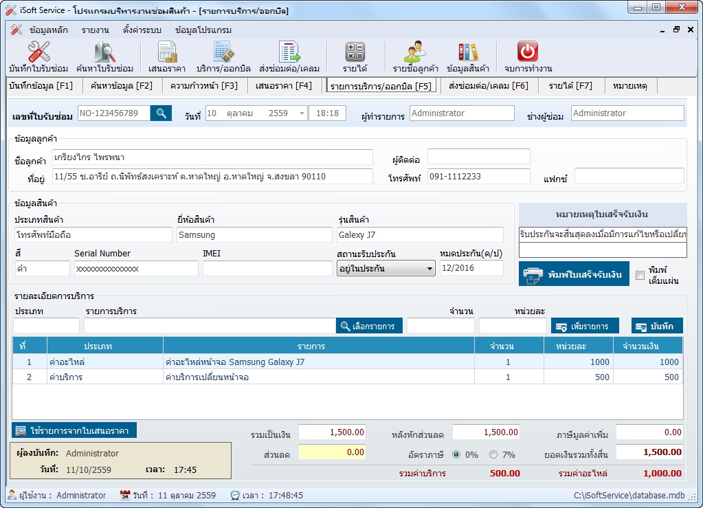 โปรแกรมบริหารงานซ่อม สำหรับศูนย์บริการ iSoftService นั้นมีระบบรับซ่อมสินค้าที่มีประสิทธิภาพ โดยเป็นระบบที่มีการจัดการข้อมูลที่ดี และสะดวกต่อการบันทึกข้อมูล หรือตรวจสอบข้อมูลย้อนหลัง เพื่อทำการแก้ไขรายการต่างๆ ดังนี้