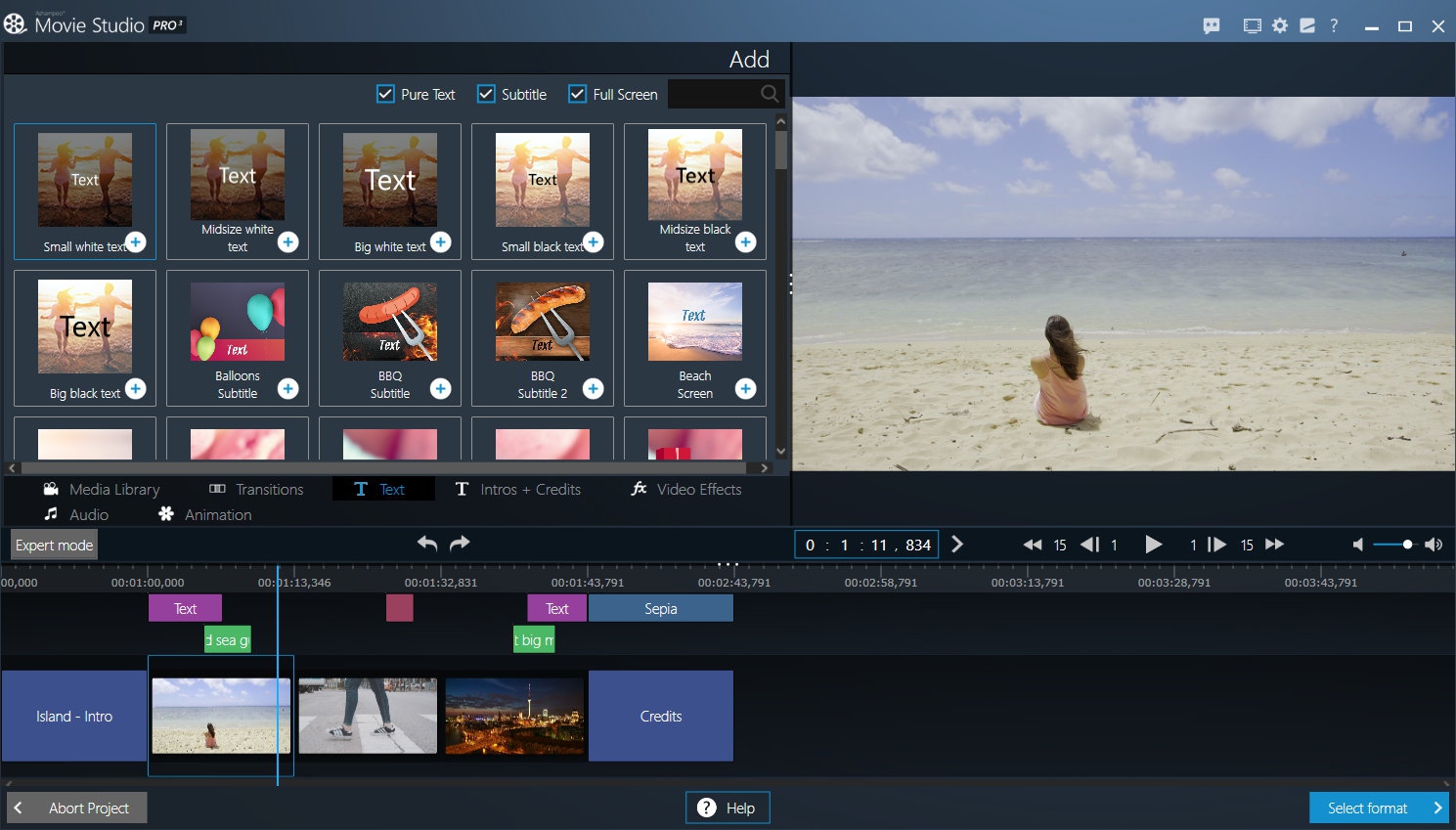 โปรแกรมตัดต่อวิดีโอ Ashampoo Movie Studio Pro 3 นั้นมาพร้อมเทคโนโลยีการตัดต่อขั้นสูง ที่จะทำให้วิดีโอของคุณนั้นมีชีวิตชีวาและเป็นมืออาชีพยิ่งขึ้น โดยมีรูปแบบการใส่เอฟเฟกต์คั่นกลางระหว่างการเปลี่ยนฉากวิดีโอ (Transitions) ที่หลากหลาย เช่น Black out, Circular และ Fade อีกทั้งยังสามารถตัด หรือ แทรกข้อความ เสียง และ วิดีโออื่น ๆ ได้ตามต้องการ
