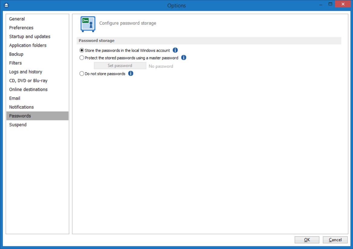 โปรแกรมสำรองข้อมูล Backup4all มาพร้อมอีกหนึ่งฟีเจอร์ระดับสูงคือ สามารถกำหนดให้ต้องป้อนรหัสผ่านเพื่อเข้าใช้งานโปรแกรม เพื่อป้องกันไม่ให้ผู้ใช้งานรายอื่น หรือผู้ไม่ประสงค์ดี เข้ามาปรับแก้การทำงานของโปรแกรมโดยไม่ได้รับอนุญาต และยังช่วยป้องกันการเข้าถึงข้อมูลที่มีความอ่อนไหวที่อยู่ในโปรแกรม อาทิ รหัสผ่านอีเมล เป็นต้น