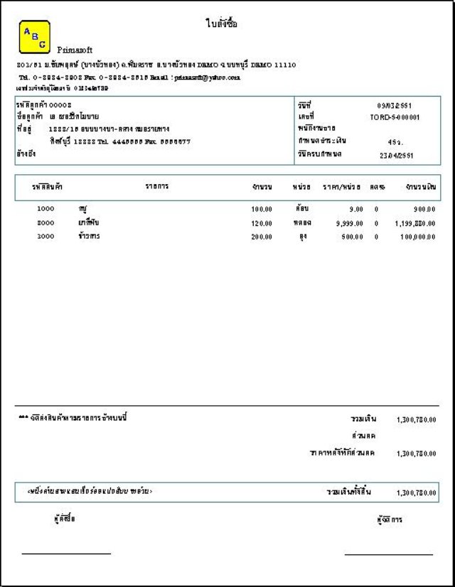 - พิมพ์เอกสารใบสั่งซื้อ / ใบเสร็จรับเงิน