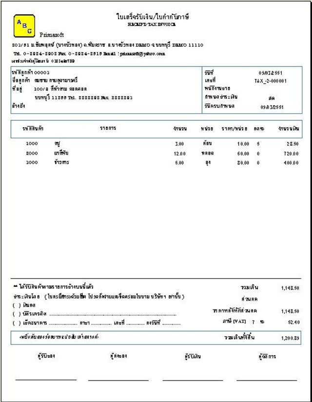 - จัดทำเอกสารใบส่งของ ใบกำกับภาษี ใบเสร็จรับเงิน เอกสารชุด ใส่โลโก้กิจการได้