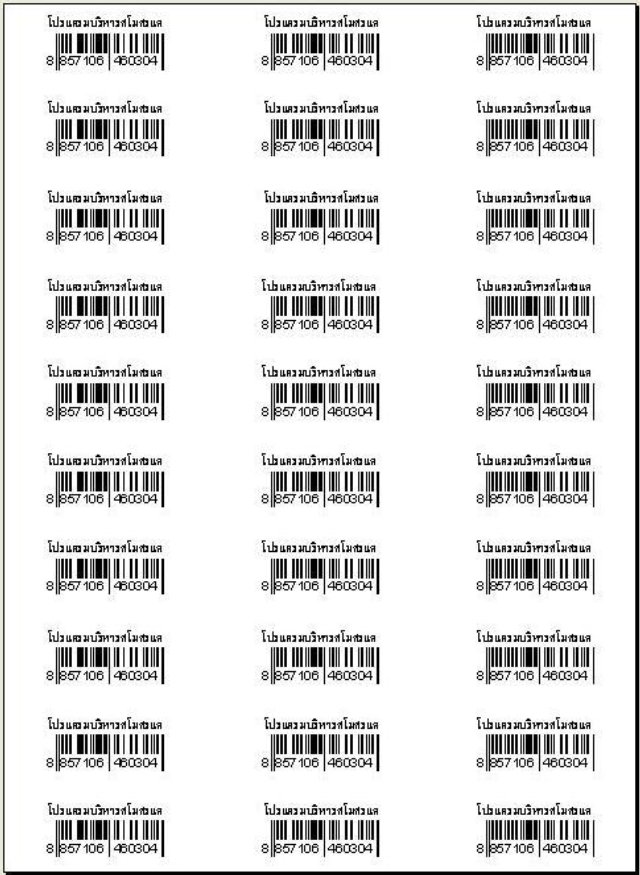 - ระบบพิมพ์บาร์โค๊ด รหัส EAN 13 หรือ รหัส CODE 128 จากข้อมูลทะเบียนสินค้า พิมพ์ลงบนกระดาษ ขนาด A4 หรือ พิมพ์ลงบนป้ายสติกเกอร์เอนกประสงค์ (แผ่นป้าย Sticker ที่จัดไว้เป็นดวง) ขนาด A9 มีจำนวน 30 ดวง , A10 มีจำนวน 24 ดวง สามารถกำหนดตำแหน่งพิมพ์เฉพาะดวงที่ต้องการใช้งานได้ และสามารถนำดวงที่เหลือที่ยังไม่ได้ใช้งาน กลับมาใช้งานได้อีก ทำให้ประหยัด