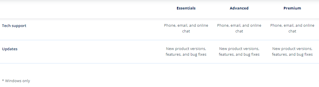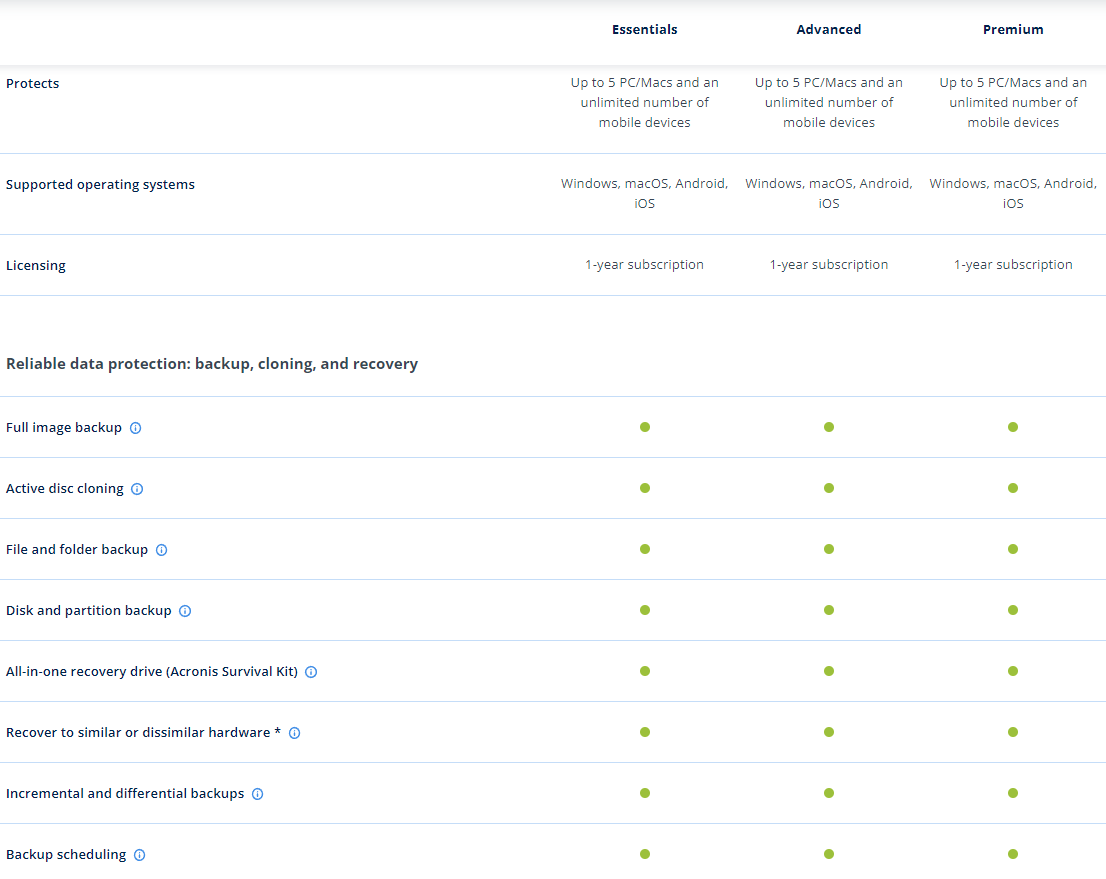 ตารางเปรียบเทียบ โปรแกรมสำรองข้อมูล Acronis True Image ในแต่ละเวอร์ชัน