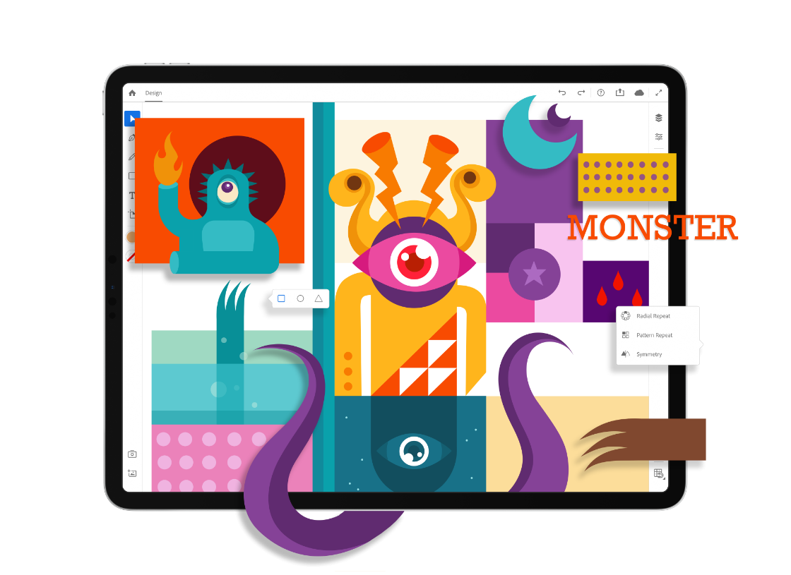 โปรแกรมวาดภาพเวกเตอร์ Adobe Illustrator for Teams Corporate พร้อมแล้วสำหรับการสร้างภาพกราฟิก และภาพวาดสวย ๆ ผ่านทางหน้าจอสัมผัส วาดลายเส้นคม ๆ วาดเส้นโค้งนุ่มนวลด้วยปากกา Apple Pencil แล้วแก้ไข Path เพื่อให้ได้ลายเส้นที่สมบูรณ์แบบ ทำให้สีสันโดดเด่นขึ้นมาด้วยการไล่โทนสีแบบ Gradients สร้างลวดลายที่สวยงามด้วยการแตะ หรือสัมผัสหน้าจอ