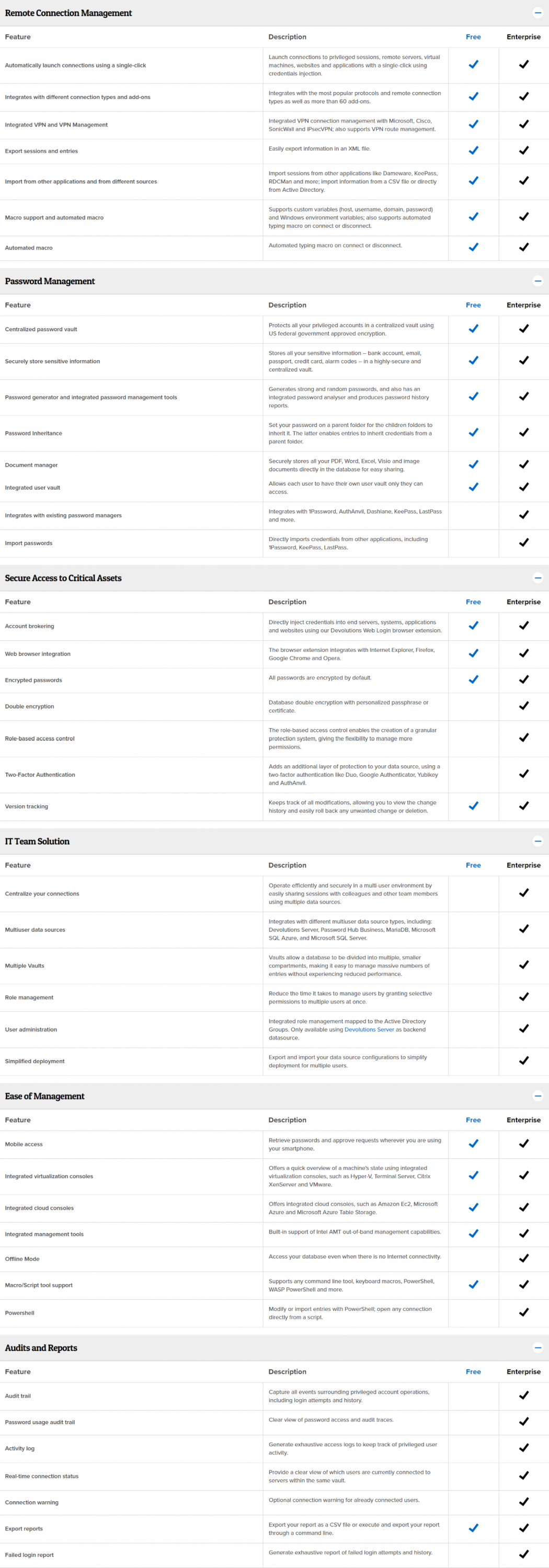 ตารางเปรียบเทียบความสามารถ โปรแกรมรีโมทคอมพิวเตอร์ Remote Desktop Manager Enterprise