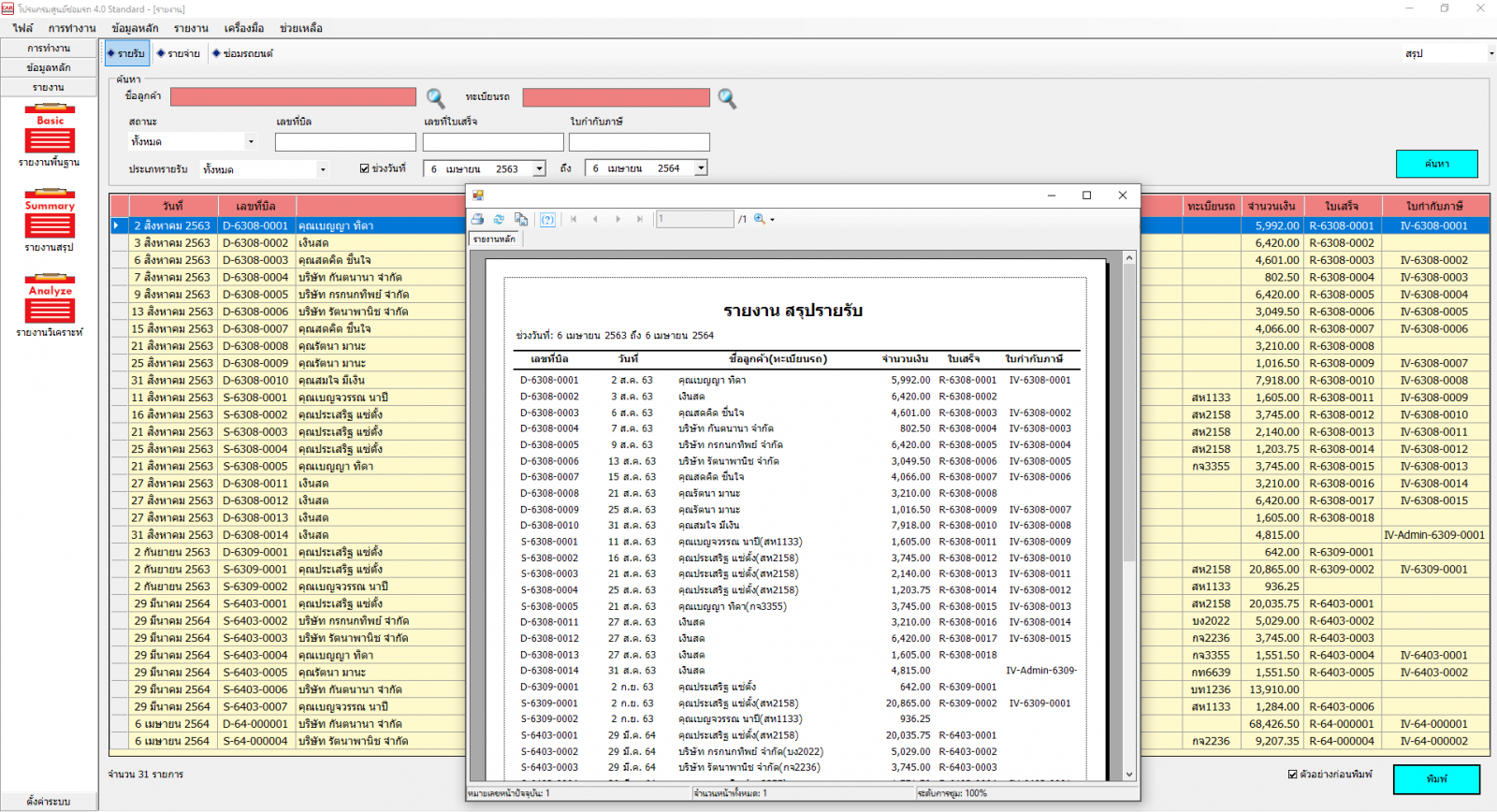 - ออกใบเสร็จรับเงินรวมค่าบริการและค่าสินค้าได้