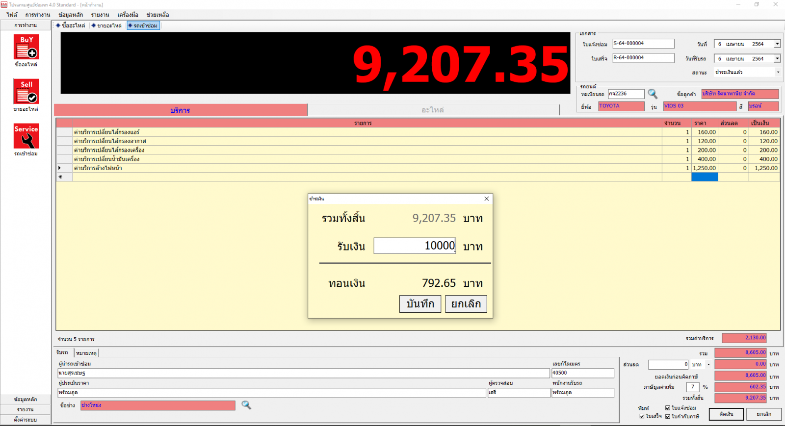 โปรแกรมบริหารจัดการ ศูนย์บริการซ่อมรถยนต์ อู่ซ่อมรถ อู่ซ่อมสี ฟีเจอร์ครบครัน จัดการงานหน้าร้าน หลังร้าน ออกรายงานได้ครบวงจร รองรับบาร์โค้ด ออกใบเสร็จได้ เหมาะสำหรับธุรกิจขนาดเล็ก