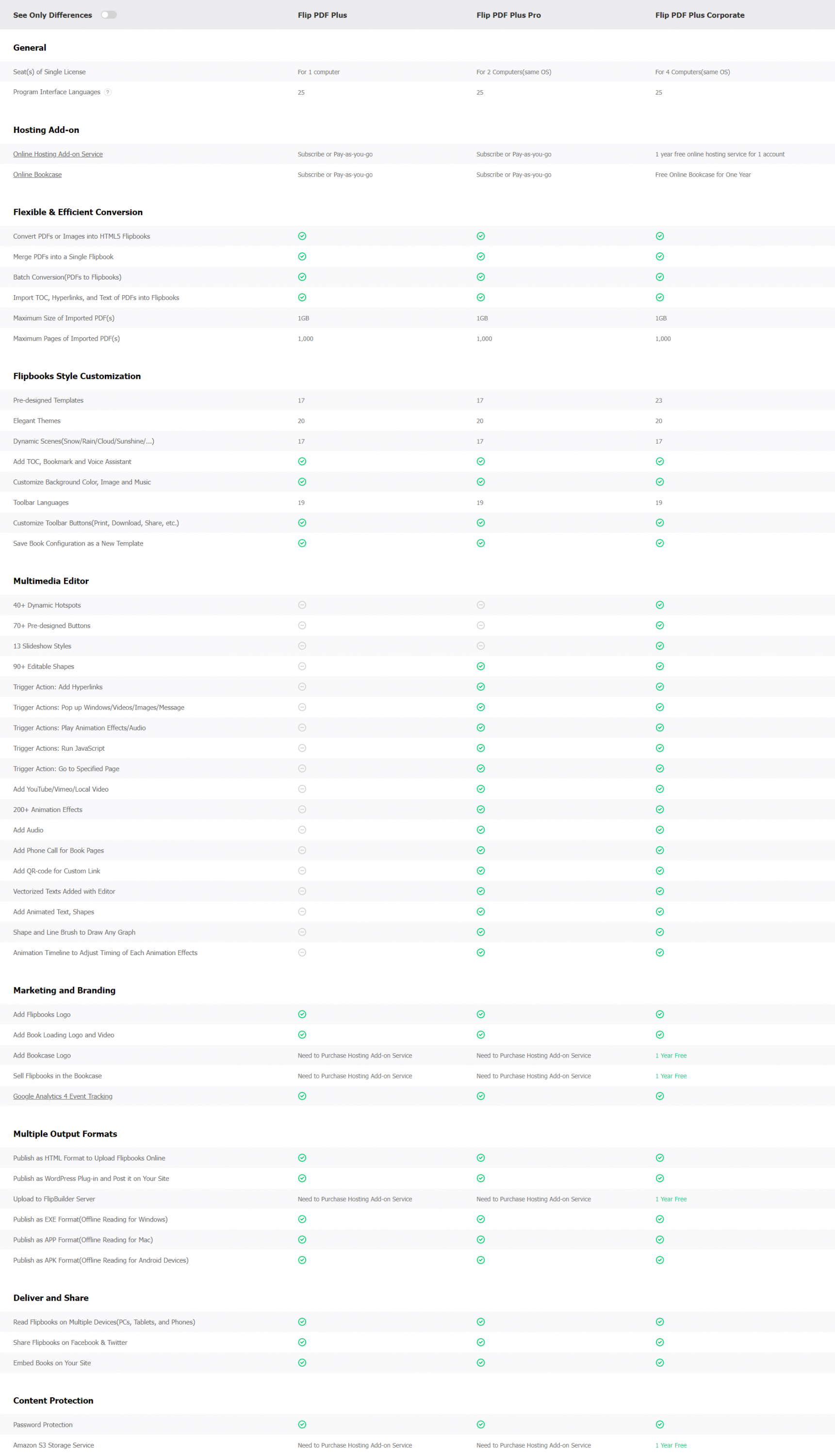 ตารางเปรียบเทียบ โปรแกรมสร้างอีบุ๊ก ฟลิปบุ๊ก Flip PDF Plus ในแต่ละเวอร์ชัน