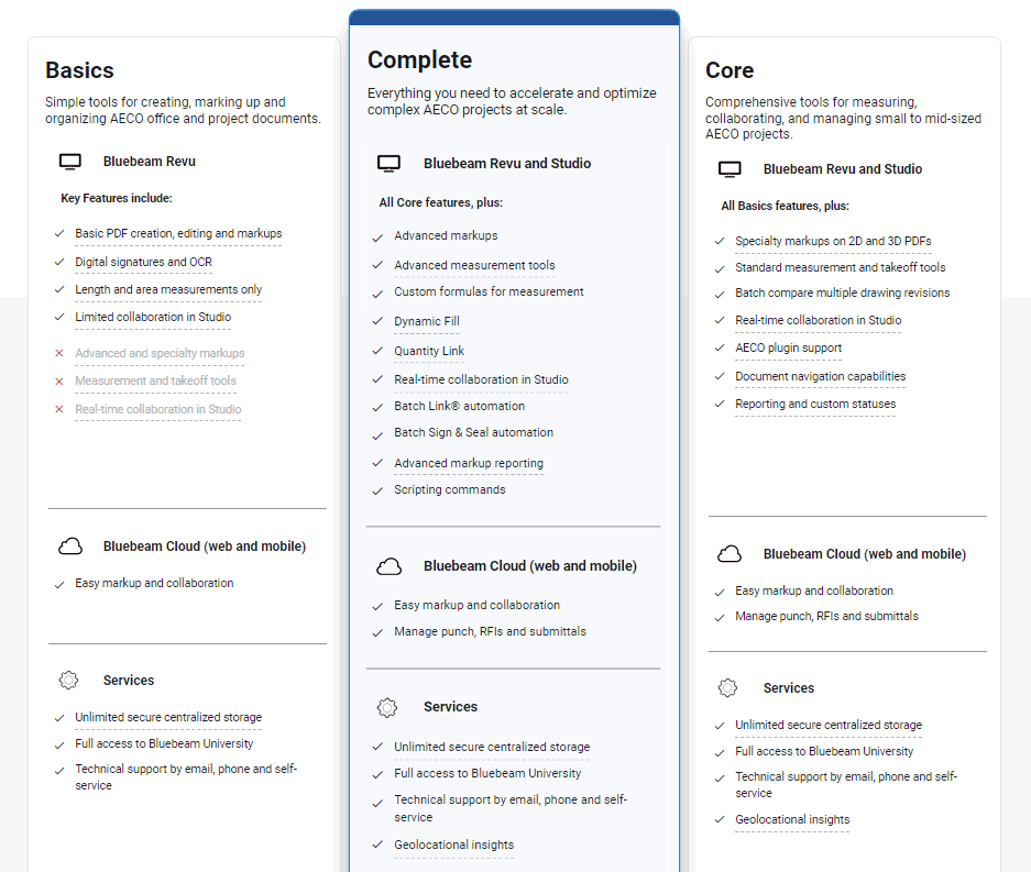 โปรแกรมจัดการเอกสารแบบแปลน สำหรับธุรกิจก่อสร้าง รุ่นระดับกลาง แก้ไขแบบแปลนแบบเรียลไทม์ รองรับปลั๊กอิน AECO เพื่อการสร้างเอกสาร PDF ของแบบแปลนอาคาร จาก โปรแกรม AutoCAD, Revit, SolidWorks และโปรแกรม Navisworks ได้โดยตรง มีระบบรายงานแบบกำหนดเอง รองรับการทำงานบน Bluebeam Cloud ทั้งบนเว็บไซต์และอุปกรณ์ iOS มีฟีเจอร์ที่ช่วยลดเวลาในการประสานงานระหว่างทีม และฟีเจอร์ขั้นสูงที่ตอบโจทย์ความต้องการอีกมากมาย (สามารถใช้งานฟีเจอร์ของรุ่น Basics ได้ทั้งหมด)