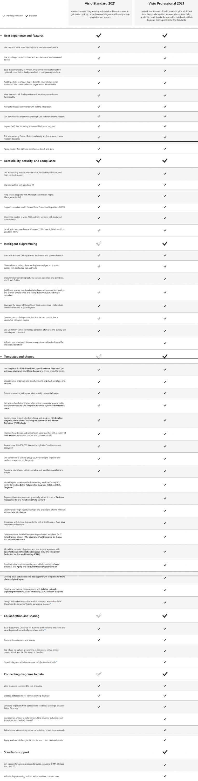 ตารางเปรียบเทียบ โปรแกรมออกแบบไดอะแกรมสำหรับธุรกิจ Microsoft Visio แต่ละเวอร์ชัน