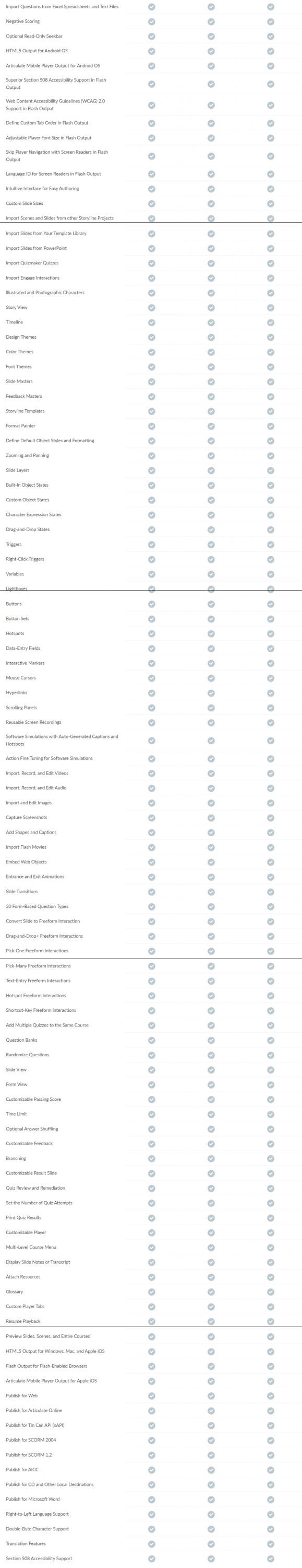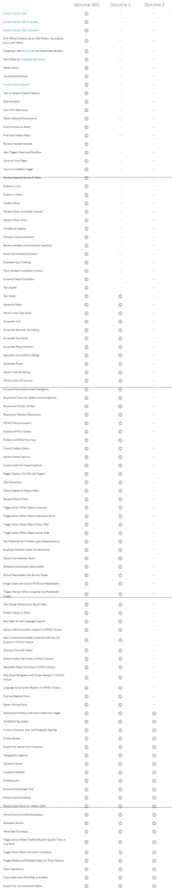 ตารางเปรียบเทียบ โปรแกรมสร้างสื่อการสอนอินเทอร์แอคทีฟ Articulate ในแต่ละเวอร์ชัน