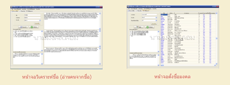 รายชื่อที่ได้จากการคำนวณของโปรแกรม จะมีทั้งคำอ่าน, ความหมาย และคำทำนายตามหลักต่างๆ ให้พร้อมสรรพ และมั่นใจได้ว่า รายชื่อมงคลที่ได้ จะไม่มีอักษรที่เป็นกาลกิณีในวันเกิดของท่านอย่างแน่นอน และคุณสามารถเลือกได้จนกว่าจะได้ชื่อมงคลที่ตรงตามความต้องการ มีความไพเราะ และทันสมัย เพราะมีรายชื่อให้เลือกกว่า 30,000 ชื่อในฐานข้อมูลของโปรแกรม