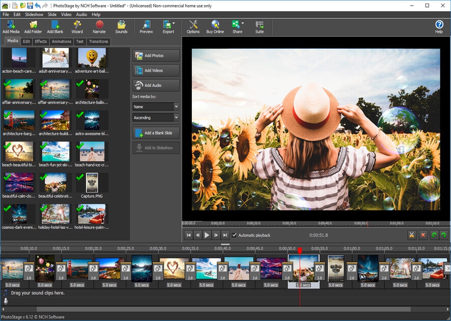 โดยโปรแกรมทำพรีเซนเทชั่น NCH PhotoStage Slideshow นั้นสามารถออกแบบงานนำเสนอจากรูปภาพ, รูปถ่าย หรือไฟล์วิดีโอได้หลากหลายโอกาส อาทิ