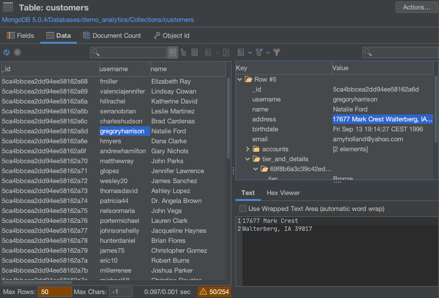 รองรับดาต้าเบสโปรไฟล์และเปิดดูเอกสาร BSON ของ MongoDB