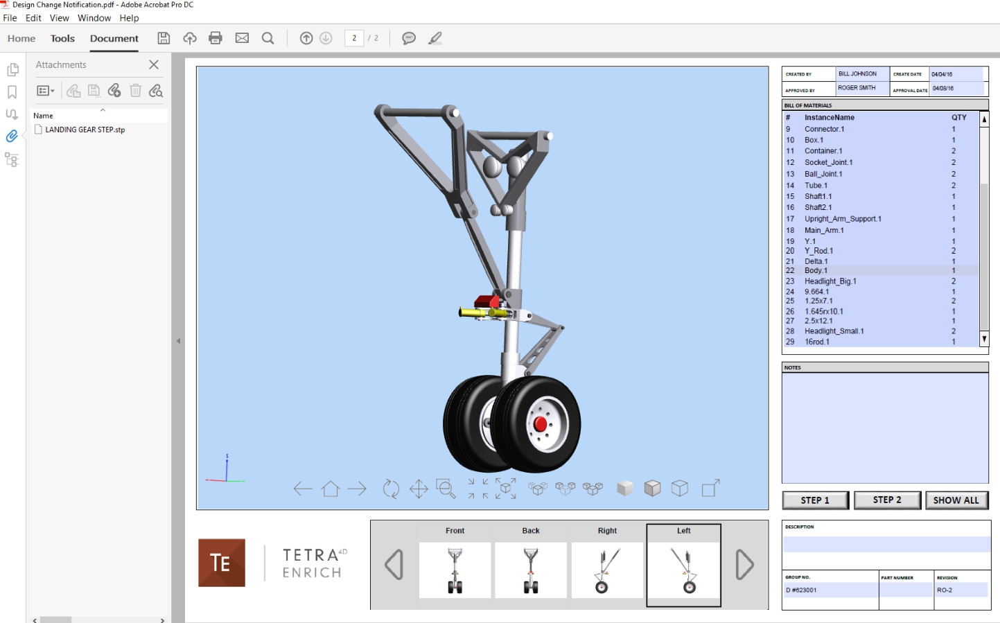โปรแกรมแปลงไฟล์งานออกแบบ 3 มิติ รุ่นระดับสูง Tetra4D Enrich สามารถรวบรวมทุกข้อมูลที่จำเป็นเกี่ยวเนื่องกับงาน CAD เอาไว้ในไฟล์เอกสาร PDF 3 มิติ ได้อย่างครบถ้วน อาทิ