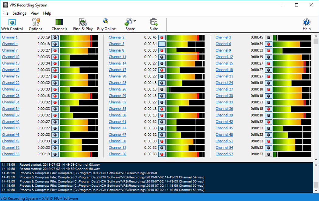 โปรแกรมบันทึกเสียง อัดเสียง NCH VRS Recording System เป็นตัวช่วยในการบันทึกเสียงแบบหลายช่องสัญญาณที่มีประสิทธิภาพ (Powerful Multi-Channel Audio Recorder) ที่สามารถบันทึกเสียงหลายช่องทางพร้อมกัน ได้ด้วยการควบคุมแบบอัตโนมัติ (Automatic Level Control) โดยโปรแกรมมาพร้อมความสามารถหลักๆ ดังนี้