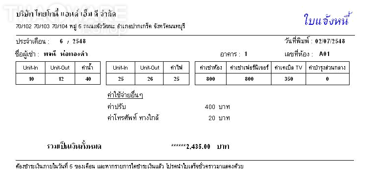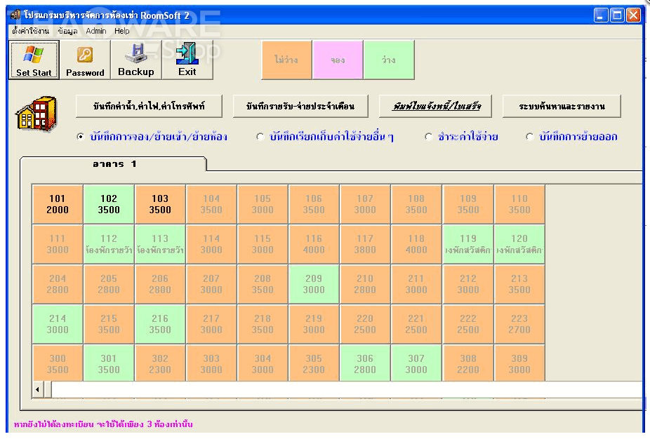 RoomSoft2 โปรแกรมบริหาร หอพัก ห้องเช่า อพาร์ทเม้นท์ แบบ ทรีอินวัน ที่ใช้บริหาร หอพัก ห้องเช่า หรือ อพาร์ทเม้นท์ แบบรายเดือน ออกรายงาน พิมพสัญญาเช่าได้ ครบวงจร