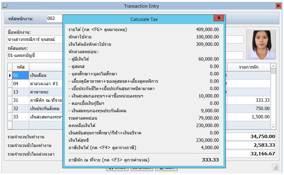 โปรแกรมเงินเดือน EASY-ACC PAYROLL 2.0 นั้นมีระบบการสร้างรายการเงินเดือนและค่าแรงอัตโนมัติ ที่ทําให้สามารถทราบเงินได้สุทธิของพนักงานแต่ละคน โดยไม่ต้องมีการบันทึกรายการใด ๆ ทั้งสิ้น รวมถึงการแก้ไข เปลี่ยนการคำนวณภาษีโดยอิสระ และ สามารถยกเลิกการคํานวณภาษี หรือจะคํานวณภาษีใหม่ได้ทุกเมื่อตามต้องการ ตราบเท่าที่ยังไม่ได้ปิดบัญชีในงวดนั้น ๆ จึงช่วยลดเวลาในการคำนวณได้เป็นอย่างมาก