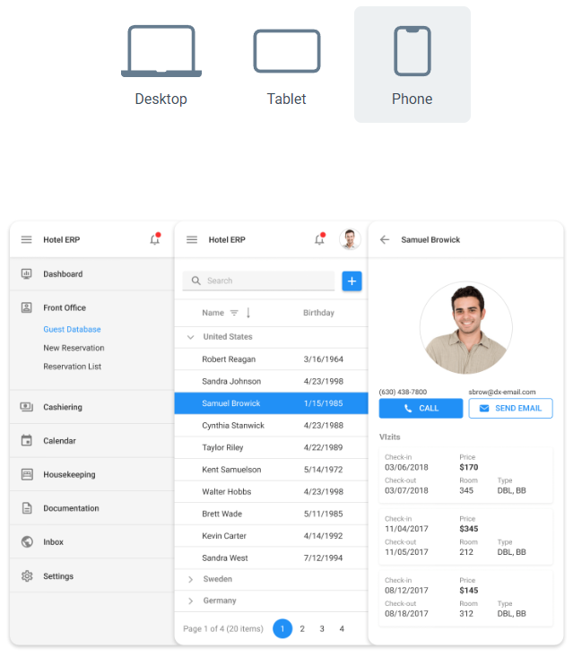 โดยเว็บแอปพลิเคชันที่พัฒนาขึ้นมาโดย โปรแกรมรวมชุดเครื่องมือด้านการพัฒนาเว็บแอปพลิเคชัน DevExtreme สามารถปรับเปลี่ยนรูปแบบการแสดงผล ให้เหมาะกับการใช้งานผ่านหน้าจอขนาดใหญ่ของเครื่องเดสก์ทอป หรือหน้าจอขนาดเล็กของ แท็บเล็ต และสมาร์ทโฟน ได้อย่างเหมาะสม (Responsive) โดยที่ DevExtreme ได้รับรางวัลยอดเยี่ยมจาก Visual Studio Magazine ในฐานะเครื่องมือสำหรับการพัฒนาเว็บแอปพลิเคชันแบบ Cross-Platform เป็นเวลา 3 ปีต่อเนื่อง