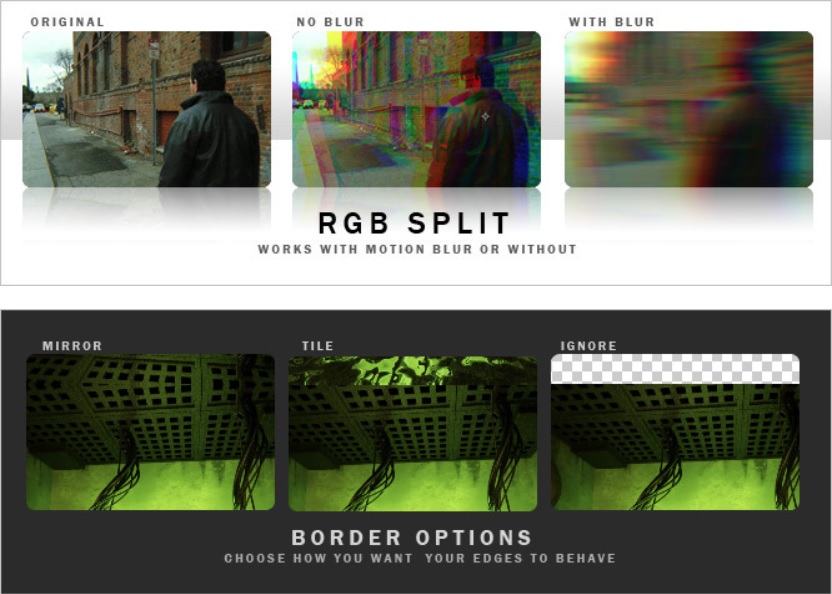 ปลั๊กอินเสริมวิดีโอเอฟเฟกต์ Video Copilot Twitch นอกจากจะมาพร้อม Operators ทั้ง 6 ตัว ที่ช่วยยกระดับงานวิดีโอของเราให้ดูมีสไตล์แล้ว ในปลั๊กอินตัวนี้ยังมาพร้อมโบนัสพิเศษ ที่ช่วยสร้างสรรค์อารมณ์ภาพให้ยอดเยี่ยมขึ้นไปอีก อาทิ RGB SPLIT ที่ทำให้เกิดโทนภาพแบบ Glitch ที่เหมาะสำหรับฉากในภาพยนตร์แนว Sci-Fi หรือ Retro