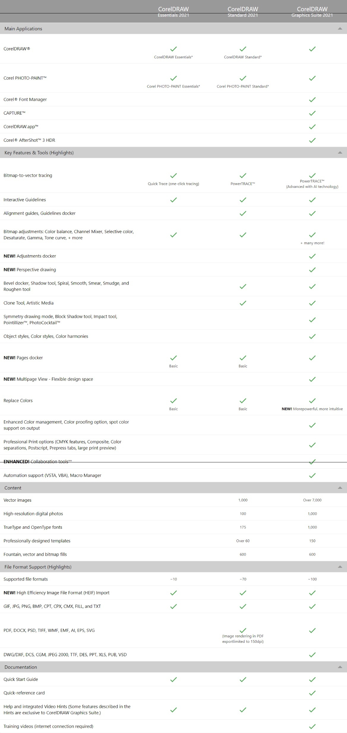 ตารางเปรียบเทียบ ชุดโปรแกรมวาดรูปกราฟิก CorelDRAW ในแต่ละเวอร์ชัน