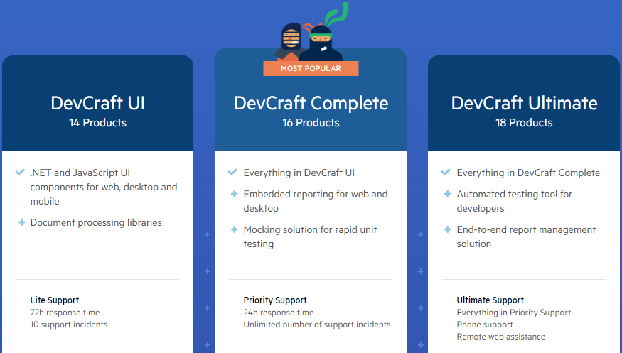 โปรแกรมสำหรับนักพัฒนา ในตระกูล DevCraft นั้นมีวางจำหน่ายในท้องตลาดอยู่ทั้งหมด 3 เวอร์ชันหลักๆ ด้วยกันคือ