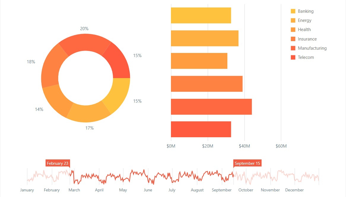 นอกจากนี้ โปรแกรมรวมชุด Control ด้านการพัฒนาโปรแกรม DevExpress DXperience ยังมี Component สำหรับการสร้างยูสเซอร์อินเตอร์เฟส ระดับประสิทธิภาพสูง ที่ช่วยในการตัดสินใจของผู้บริหารในองค์กรธุรกิจ อาทิการสร้าง Dashboard ที่สรุปรวมข้อมูลของธุรกิจ ที่เปิดโอกาสให้ผู้ใช้งานได้ปรับแต่งรูปแบบการแสดงผลของ Dashboard ได้เอง