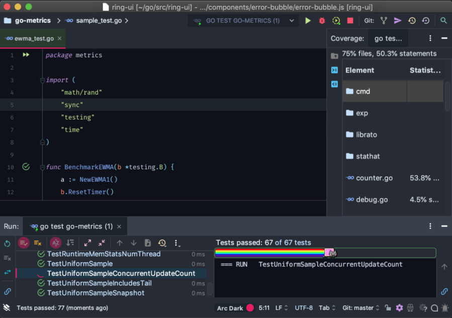 โปรแกรมรวมเครื่องมือสำหรับผู้พัฒนาภาษาโก Jetbrains GoLand 2025 มาพร้อมเครื่องมือ Built-in ที่ทรงพลังสำหรับการสั่งรัน และ Debug โปรแกรม/แอปพลิเคชัน ที่เราพัฒนาขึ้นมา นักพัฒนาสามารถเขียนโค้ด ทดสอบการทำงาน และทำการ Debug ได้โดยไม่ต้องมีการติดตั้งปลั๊กอินพิเศษใด ๆ เพิ่มเติม และไม่ต้องยุ่งยากกับการปรับแต่งใด ๆ สามารถทำการทดสอบโค้ดได้ครอบคลุมในทุกมิติ ทำให้ไม่มีการตกหล่นในทุกรายละเอียดที่สำคัญ