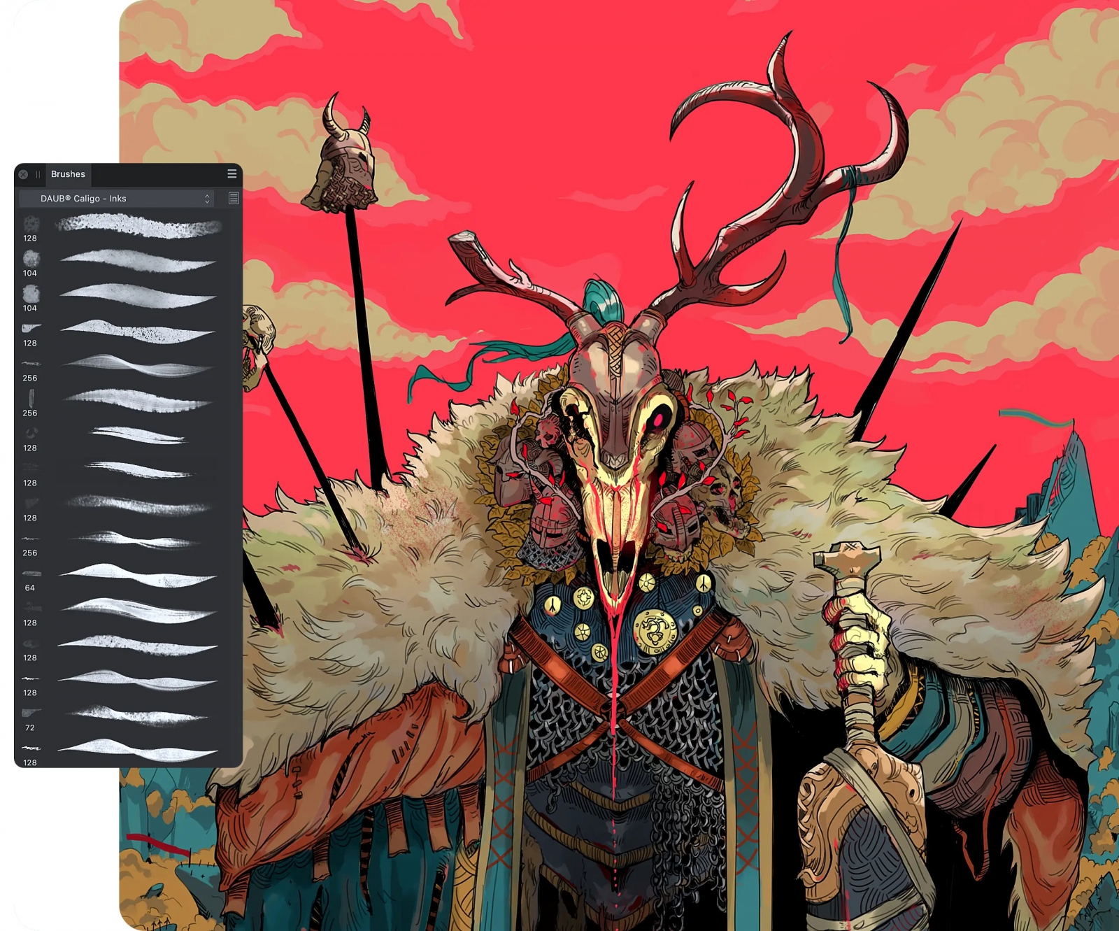 ภายในโปรแกรมมีไลบรารี่ขนาดใหญ่ของภาพวาด เท็กซ์เจอร์ และเทคโนโลยีหัวแปรง DAUB ที่ให้อารมณ์ในการสร้างสรรค์ผลงาน เสมือนการวาดภาพบนผืนผ้าใบด้วยสีจริง ปรับแต่งหัวแปรงให้มีเอกลักษณ์ของเราเอง ด้วยรายการปรับแต่งที่สามารถลงลึกในรายละเอียด และสร้างความแตกต่างได้จริง รวมการทำงานของหัวแปรงหลายแบบ และวาดรวมกันในลงแปรงครั้งเดียว รองรับการทำงานอย่างเต็มรูปแบบกับกระดานวาดภาพ Wacom และกระดานวาดภาพอื่นๆ ให้น้ำหนักการลงสีตามน้ำหนักการกดหัวปากกา ฟีเจอร์ที่เพิ่มเข้ามาใน Affinity Photo 2 เวอร์ชันล่าสุด