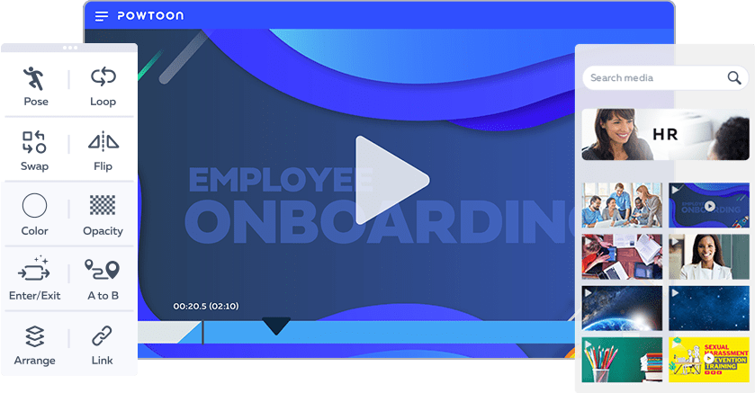 โปรแกรมตัดต่อวิดีโอ ทำวิดีโอสำหรับธุรกิจ รุ่นโปร Powtoon Professional จะช่วยให้ช่องทางการสื่อสารต่าง ๆ ที่มีอยู่ในองค์กรธุรกิจ ถูกใช้งานอย่างคุ้มค่า ด้วยการสร้างสรรค์สื่อวิดีโอการ์ตูนแอนิเมชัน ที่ช่วยสร้างองค์ความรู้ให้กับพนักงาน เพื่อนำไปเผยแพร่ผ่านระบบ อินทราเน็ต (Intranet) ระบบจัดการองค์ความรู้ขององค์กร หรือ LMS (Learning Management System) รวมถึง เว็บไซต์ โซเชียลมีเดีย และบล็อกต่าง ๆ ของธุรกิจ ใช้พลังของการสื่อสารด้วยภาพวิดีโออย่างทรงพลัง ทำให้ธุรกิจเดินไปในทิศทางที่ควรจะเป็น