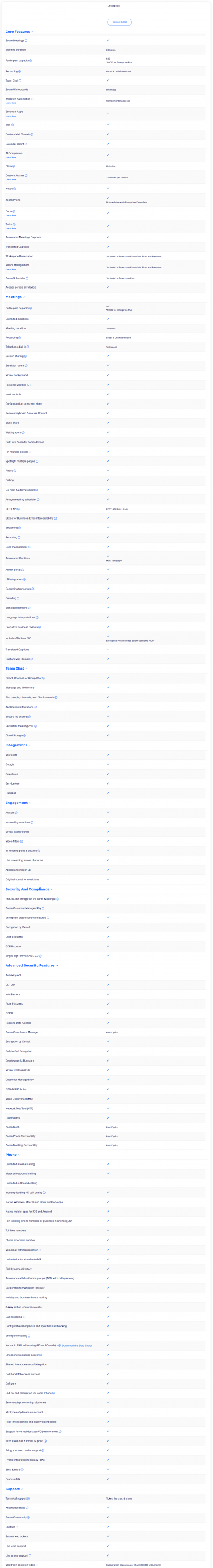 ตารางแสดงความสามารถ โปรแกรมประชุมออนไลน์ Zoom Workplace Enterprise