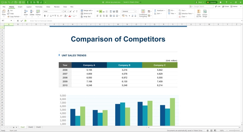 หน้าตา และเมนูต่างๆ รวมถึงปุ่มไอคอนใน ชุดโปรแกรม Polaris Office ที่ได้รับการปรับโฉมใหม่ให้ดูทันสมัย และสบายตามมากขึ้น ทำให้สะดวกกับการใช้งาน หาสิ่งที่ต้องการใช้เจอได้อย่างง่ายดาย มีธีมให้เลือกให้เลือกใช้หลากแบบ ทั้งธีมในโทนสีอ่อน และโทนสีเข้ม ปรับหน้าตา อารมณ์และความรู้สึกในการใช้งานได้ตามต้องการ