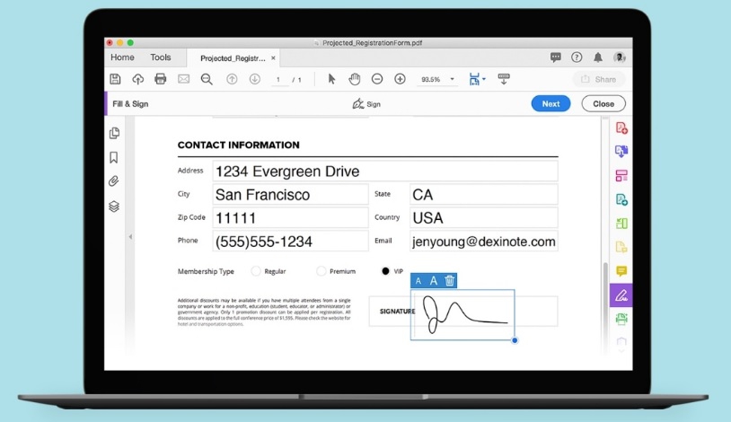 โปรแกรมจัดการลายเซ็นอิเล็กทรอนิกส์ E-Signature สำหรับองค์กรธุรกิจ Adobe Acrobat Sign Solutions for Business จะเข้ามาช่วยส่งเอกสารไปขอลายเซ็นผ่านระบบออนไลน์ และผู้รับสามารถลงลายเซ็นได้ในทันที เก็บลายเซ็นจากลูกค้า หรือผู้ที่มีส่วนเกี่ยวข้องที่อยู่ทั่วโลกได้อย่างรวดเร็ว ง่ายดาย ไม่ต้องเสียค่าใช้จ่ายในการจัดส่งเอกสาร และเป็นโซลูชันจัดการลายเซ็นอิเล็กทรอนิกส์ที่ทำงานบนระบบอินเทอร์เน็ตคลาวด์สมบูรณ์แบบ ทำการสร้างเอกสาร และลงลายเซ็นผ่าน โปรแกรมอินเทอร์เน็ตเบราว์เซอร์ ได้เลย ไม่ต้องมีการติดตั้งโปรแกรมลงในเครื่อง