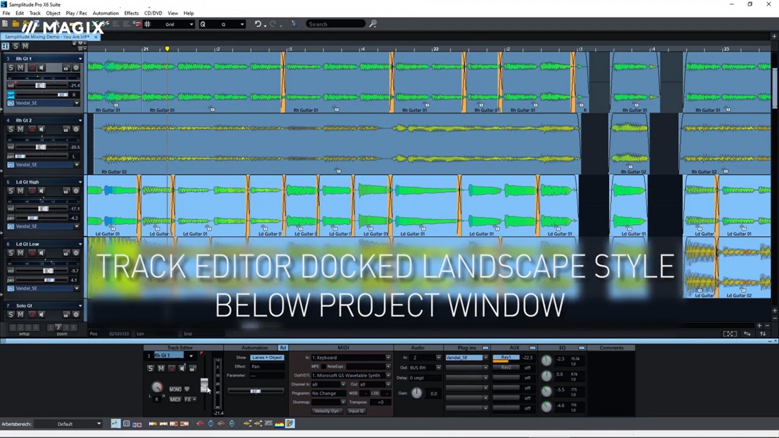 โปรแกรมตัดต่อเสียง มิกซ์เสียง รุ่นสูงสุด Samplitude Pro X8 Suite มาพร้อม ตัวปรับแต่งแทร็กเสียง (Track Editor) ที่ช่วยให้เข้าถึงรายการปรับแต่งสำคัญ ๆ ได้อย่างง่าย ๆ ในทุกเวลาที่ต้องการ ตั้งแต่การปรับตั้งค่า AUX, มิกซ์เซอร์, ปลั๊กอิน และอีควอไลเซอร์ สามารถลาก Track Editor ไปวางไว้บนจุดต่าง ๆ ของหน้าจอได้ทั้งในแนวตั้งและแนวนอน สามารถปรับ Fader และปรับแต่งค่าต่าง ๆ ของแทร็กเสียงได้อย่างรวดเร็ว