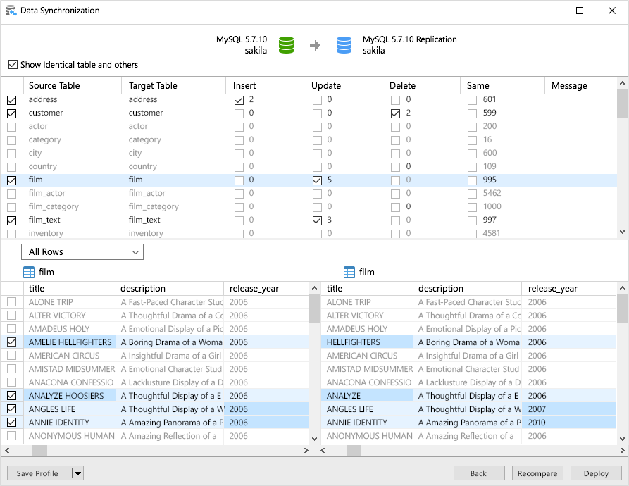 โปรแกรมจัดการฐานข้อมูล Navicat 17 for MySQL - Perpetual License จะทำให้งานของผู้ดูแลระบบฐานข้อมูลง่ายขึ้น ไม่ว่าจะเป็นการ โอนฐานข้อมูล ซิงค์ฐานข้อมูล ซิงค์โครงสร้างฐานข้อมูล มีคำแนะนำแบบเป็นขั้นเป็นตอนสำหรับการถ่ายโอนระหว่างฐานข้อมูลหลากหลายรูปแบบ เปรียบเทียบและซิงค์ทั้งในระดับข้อมูล และโครงสร้างฐานข้อมูล เซ็ตอัปและเริ่มต้นเปรียบเทียบฐานข้อมูลได้อย่างรวดเร็ว และมีการให้คำแนะนำว่าเราต้องจัดการอย่างไรบ้างเพื่อให้การซิงค์สมบูรณ์แบบ
