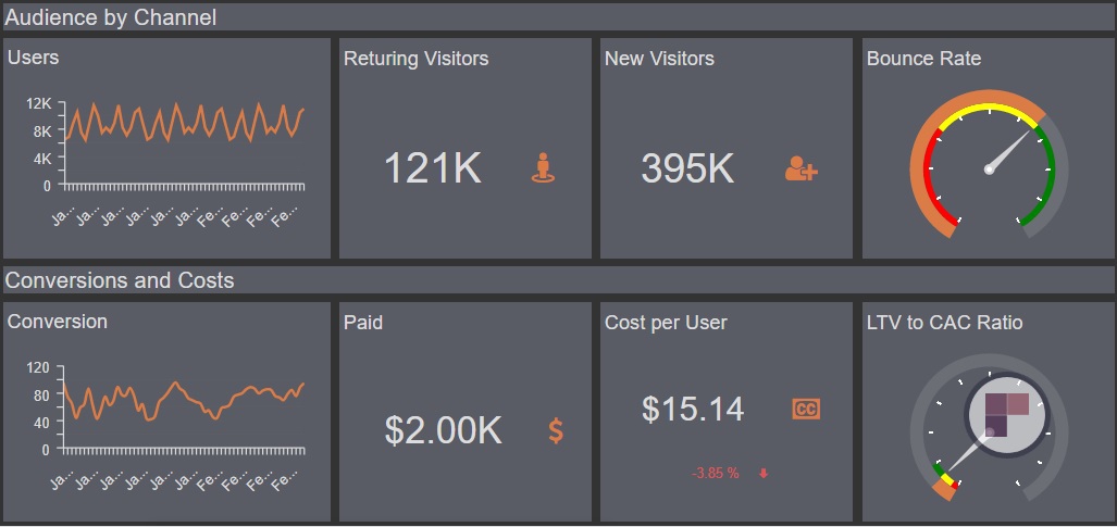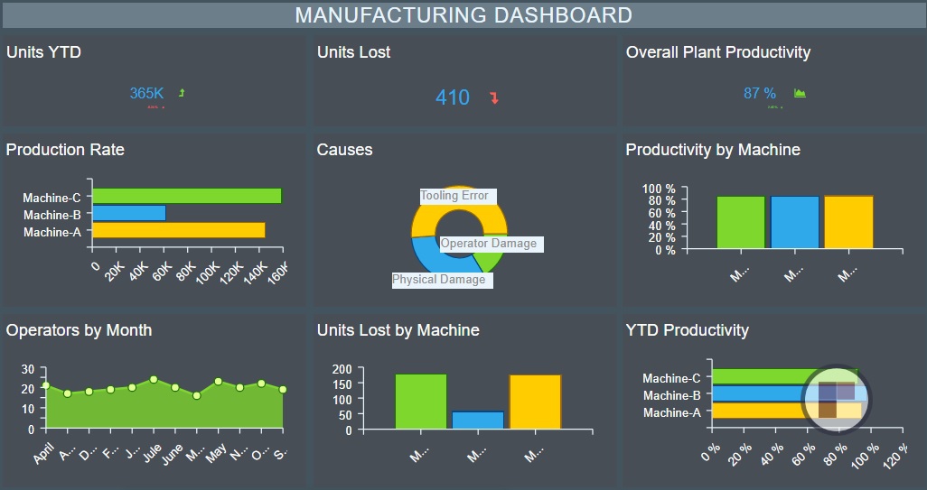 โดยมันเครื่องมือที่มี อาทิ การนำเสนอข้อมูลในรูปแบบ ตัวอักษร รูปภาพ ตัวชี้วัด (Indicator) บาร์โค้ด และองค์ประกอบอื่นๆ อีกมากมายหลายรูปแบบ มี Wizard สำหรับการนำเสนอข้อมูลรูปแบบต่างๆ ให้เลือกใช้มากมาย ทำให้เปลี่ยนผ่านจากไอเดีย ให้เป็น รายงาน และแดชบอร์ดที่ใช้งานจริงได้อย่างง่ายดาย