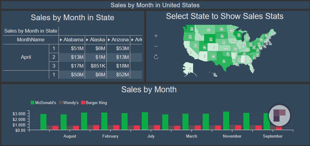 โดยตัวอย่างของ รายงาน/ แดชบอร์ด (Dashboard) ที่สามารถสร้างได้ง่ายๆ ด้วยเครื่องมือใน โปรแกรม Stimulsoft Ultimate ก็มีอาทิ รายงานยอดขายแยกตามเขต/ภูมิภาค, Dashboard ที่แสดงให้เห็นประสิทธิภาพการใช้งานโซเชี่ยลเน็ตเวิร์คของธุรกิจ, รายงานปริมาณ Traffic การเข้าถึงเว็บไซต์ รวมถึงรายงานทางด้านการเงินต่างๆ เป็นต้น