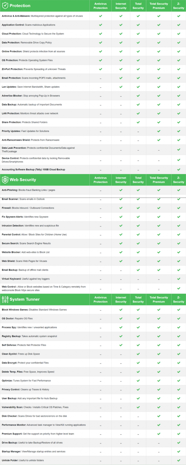 โปรแกรม Net Protector Total Security โปรแกรมนี้เป็น โปรแกรมแอนตี้ไวรัส (Antivirus Software) สำหรับการใช้งานตามบ้าน ที่พัฒนามาให้ใช้งานง่าย ที่จะปกป้องคอมพิวเตอร์ของเราให้ปลอดภัยจาก ไวรัส (Virus) มัลแวร์ (Malware) หนอนคอมพิวเตอร์ (Worm) มัลแวร์เรียกค่าไถ่ (Ransomware) แอดแวร์ (Adware) สปายแวร์ (Spyware) การล่อลวงบนโลกออนไลน์ (Phishing) รวมถึงไฟล์แนบอีเมลที่ติดไวรัส และภัยคุกคามอื่นๆ อีกมากมาย ด้วยเทคโนโลยีชั้นสูง