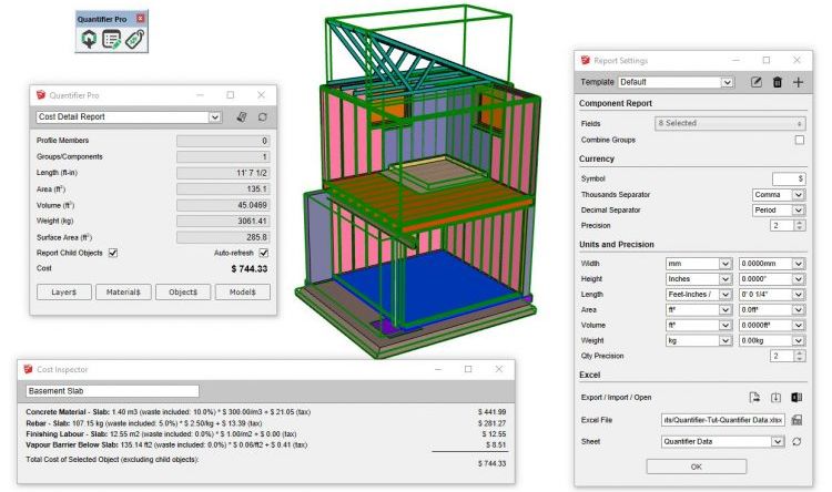 Quantifier Pro เป็นปลั๊กอินที่ช่วยให้เราสามารถคำนวณต้นทุน ของงานออกแบบอาคารด้วย โปรแกรม SketchUp และคำนวณปริมาณการใช้วัสดุก่อสร้าง อาทิ คอนกรีต เหล็ก กระเบื้อง เป็นต้น สามารถกำหนดราคาต่อหน่วย สามารถทำงานร่วมกับ โปรแกรม Microsoft Excel เพื่อสรุปผลต้นทุนโครงการก่อสร้างต่างๆ ในรูปแบบ Spradesheet ตอบความต้องการด้านงาน BIM ที่ครบกระบวนการของงานก่อสร้างอาคาร ตั้งแต่การออกแบบอาคารได้อย่างมีรายละเอียดแม่นยำ ด้วย SketchUp + Profile Builder สามารถนำงานที่ออกแบบไว้ไปก่อสร้างได้จริง และคำนวณต้นทุนก่อสร้างได้อย่างแม่นยำด้วยปลั๊กอินตัวนี้