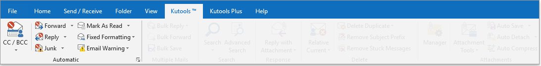 เรียกใช้งานเครื่องมือของ Kutools for Outlook ผ่านแถบเมนูบนโปรแกรม Microsoft Outlook ที่จัดเรียงเอาไว้อย่างดี เข้าใจง่าย และเป็นมิตรกับผู้ใช้งาน ทำให้ช่วยลดเวลาการทำงานได้อย่างมากมาย สำหรับพนักงาน หรือคนที่ใช้โปรแกรม Outlook ในชีวิตประจำวัน