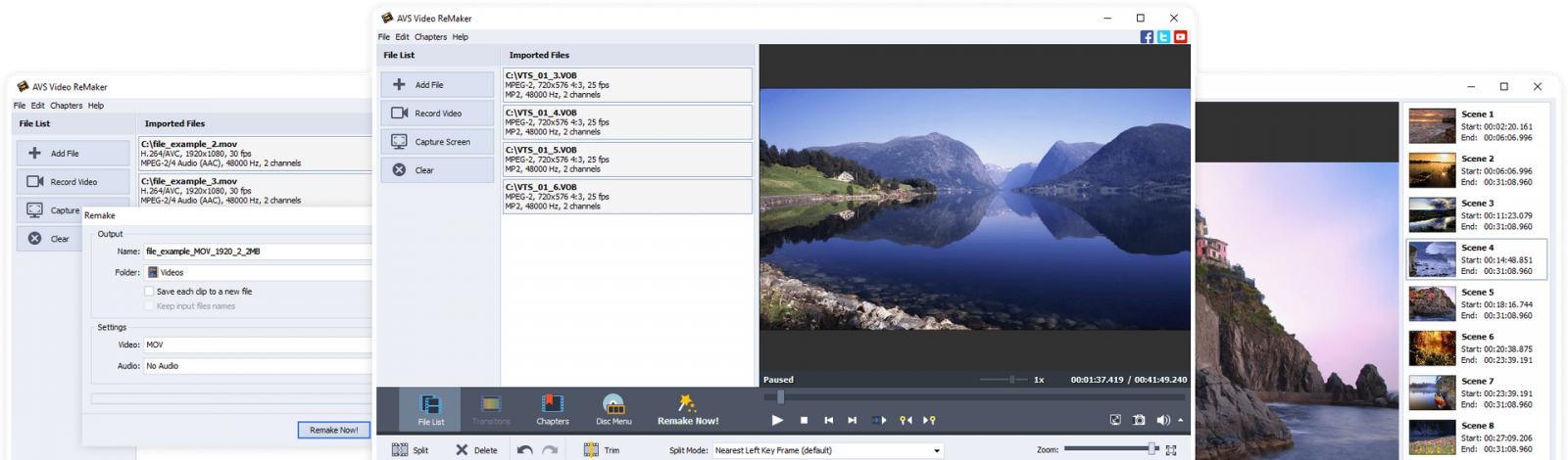 โปรแกรม AVS Video ReMaker เป็น โปรแกรมบันทึกและไรท์แผ่นวิดีโอ ที่สามารถทำงานกับไฟล์วิดีโอได้หลากหลายฟังก์ชัน ไม่ว่าจะเป็นการ ตัด หรือลบบางส่วนของวิดีโอทิ้ง โดยไม่มีการแปลงฟอร์แมตไฟล์ การบันทึกวิดีโอจากกล้องเว็บแคม และการอัดวิดีโอจากหน้าจอคอมพิวเตอร์ เพื่อทำสื่อการสอน หรือแคสเกม รวมถึงการสร้างสรรค์แผ่นภาพยนตร์ DVD และ Blu-ray จากไฟล์วิดีโอของเรา ให้ออกมามีหน้าเมนู และมีการแบ่ง Chapter ที่ดูดีลงตัวอย่างมืออาชีพ