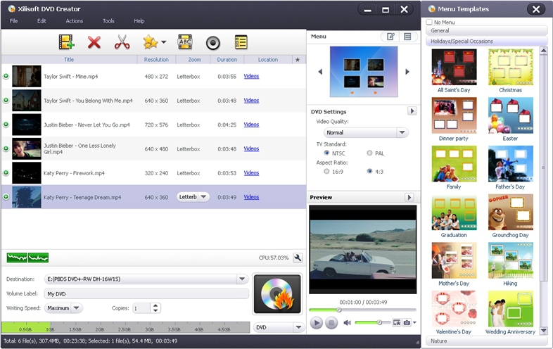 คุณสามารถเลือกเทมเพลต (Template) เพื่อสร้างเมนูของแผ่น DVD ได้อย่างมีสไตล์ด้วยตัวเอง โดยสามารถแทรกภาพพื้นหลัง (Background Picture) และ เพลงประกอบ (Music) ที่ไม่ซ้ำใคร และตั้งค่า จัดเรียงไฟล์บนแผ่น DVD ได้อย่างยืดหยุ่น