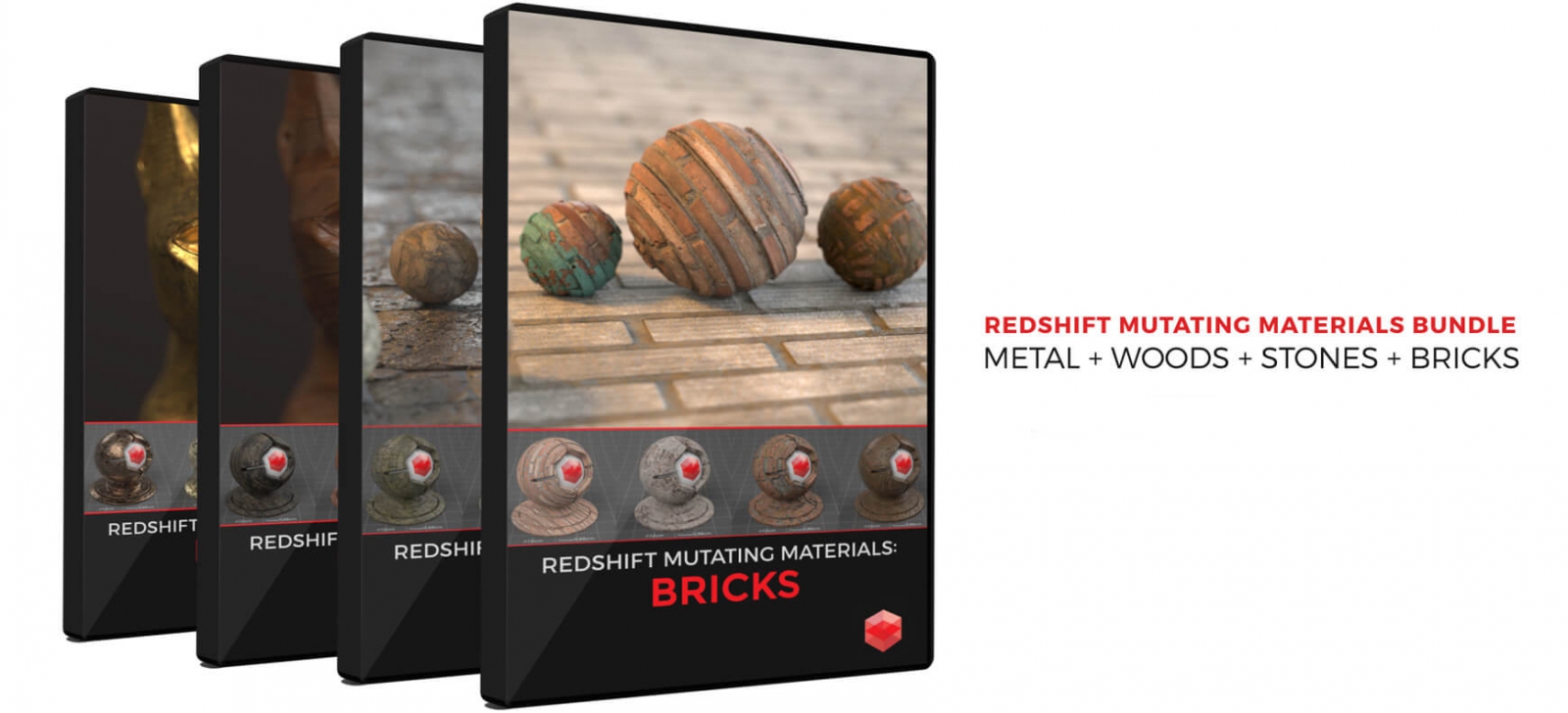 Pixel Lab Redshift Mutating Materials : Bricks เป็นรวมชุดวัตถุดิบอิฐที่ครอบคลุมความต้องการมากที่สุด สำหรับอาชีพด้านงาน 3 มิติ ที่สร้างสรรค์ผลงานด้วย Redshift และ Cinema 4D ในชุดมีการรวบรวมวัตถุดิบอิฐให้เลือกใช้งานกว่า 270 รูปแบบ ที่มีลวดลาย และริ้วรอยที่มีเอกลักษณ์เฉพาะตัว (มีทั้ง กำแพง พื้น อิฐทาสี และดินเผา) โดยที่พื้นผิวของวัตถุดิบ (Texture) นั้นมีความละเอียดสูงระดับ 4K และเชื่อมต่อกันได้แบบไร้รอยต่อ โดยที่มีการแบ่งวัตถุดิบอิฐออกเป็น 12 กลุ่มดังนี้