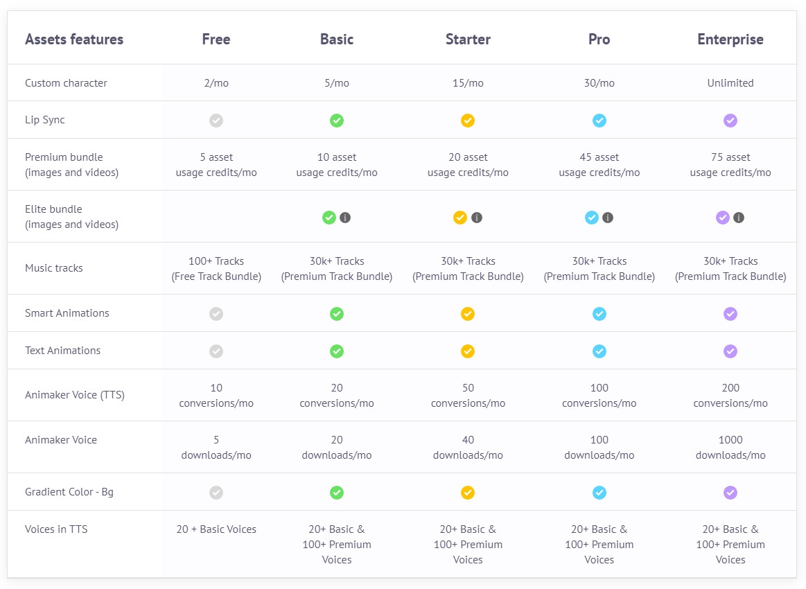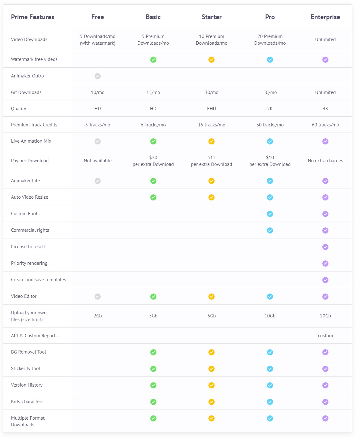 ตารางเปรียบเทียบ โปรแกรมออกแบบ ทำแอนิเมชัน Animaker ในแต่ละเวอร์ชัน