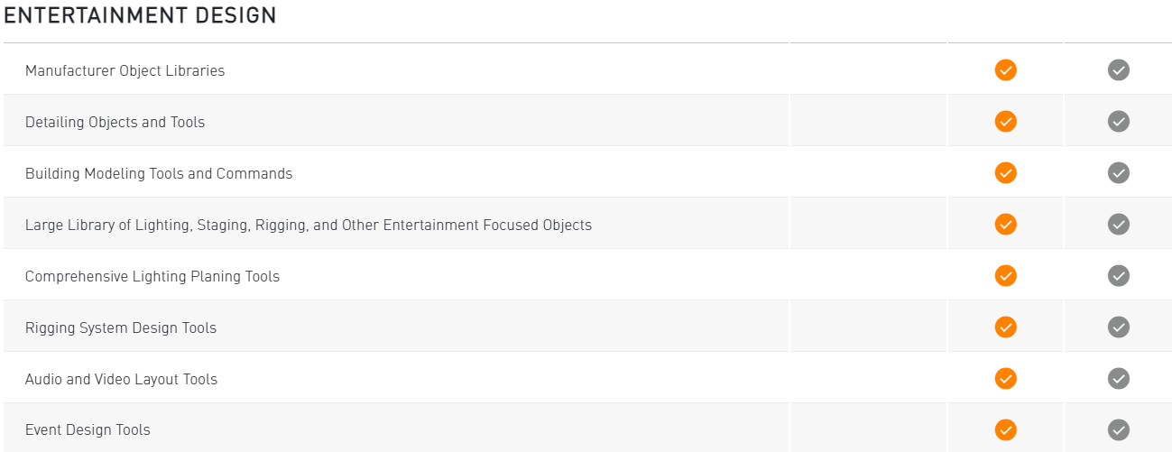โปรแกรม Vectorworks Spotlight สำหรับงานออกแบบ เขียนแบบ 2 มิติ 3 มิติ ได้อย่างมืออาชีพ ใช้ในงานออกแบบเวทีการแสดง และแถวที่นั่งของผู้ชม ที่มีครบทั้งระบบ แสง สี เสียง ยิ่งใหญ่อลังการ คำนวณความแข็งแรงของโครงสร้าง ครบทั้งการออกแบบ จัดทำเอกสาร และสร้างงานนำเสนอ ที่เกี่ยวเนื่องกับงานออกแบบเวที ใช้งานได้ตรงตามความต้องการในงานออกแบบเวทีการแสดง