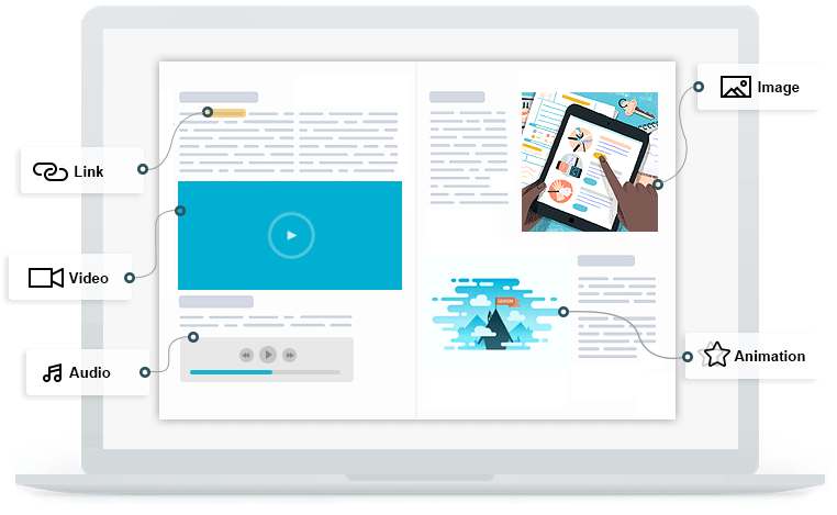โปรแกรมทำอีบุ๊กออนไลน์ รุ่นระดับสูง FLIPHTML5 PLATINUM สามารถจัดทำอีบุ๊กแบบ Rich Media ที่มีทั้งข้อความ ภาพประกอบ ลิงก์ไปยังหน้าเว็บขายสินค้า เสียงประกอบ วิดีโอ แอนิเมชันกราฟิกที่มีความเคลื่อนไหว โดยเป็นอีบุ๊กที่เปิดอ่านบนออนไลน์ได้ผ่าน โปรแกรมเปิดเว็บ หรือ เว็บเบราว์เซอร์ (Web Browser) ได้อย่างสะดวก โดยไม่ต้องติดตั้งโปรแกรมใดๆ เพิ่มเติม