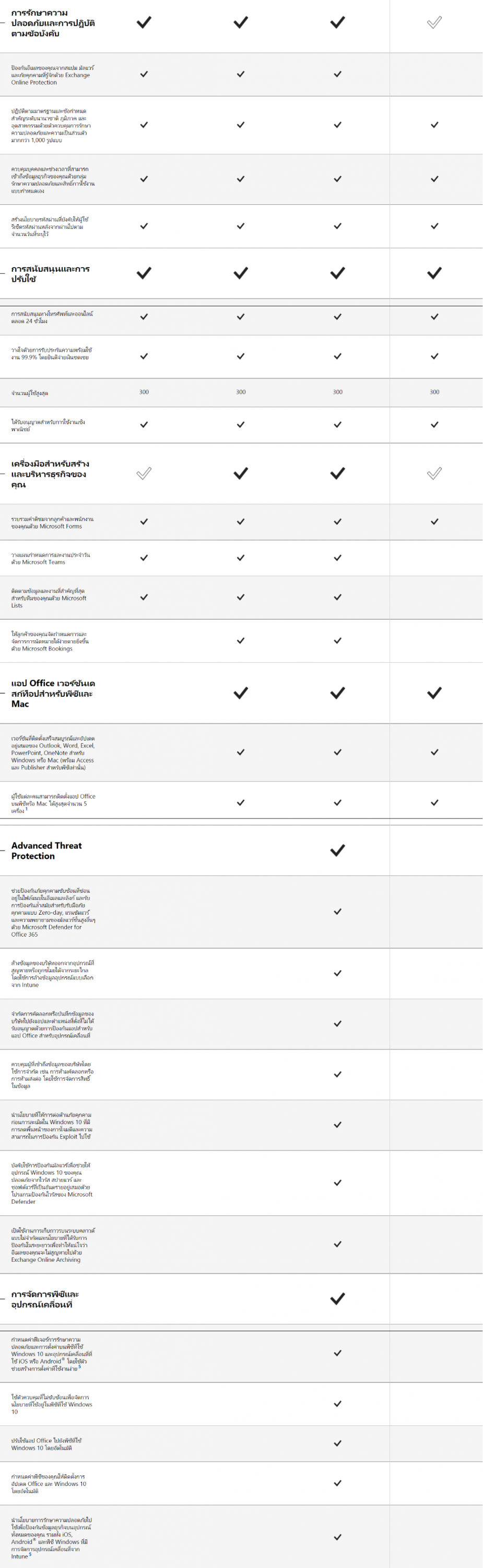 ตารางเปรียบเทียบ ชุดโปรแกรมจัดการสํานักงาน ที่มีลิขสิทธิ์ถูกต้องตามกฎหมาย Microsoft 365 ในแต่ละเวอร์ชัน