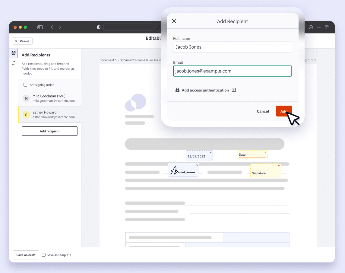 โซลูชันลายเซ็นอิเล็กทรอนิกส์ รุ่นระดับสูง Nitro Sign Plus นั้นมาพร้อมกับฟีเจอร์ Bulk Signing ที่สามารถส่งคำขอการลงลายเซ็นไปยังผู้รับจำนวนหลายรายได้ในครั้งเดียว ไม่ต้องเสียเวลาในการดำเนินการส่งเอกสาร และตามลายเซ็นทีละราย โดยผู้รับแต่ละคนจะได้รับเอกสารสำเนา เพื่อทำการเซ็นเอกสารและส่งกลับมาที่คุณ เรียกได้ว่าช่วยประหยัดเวลาในการทำงานได้มาก