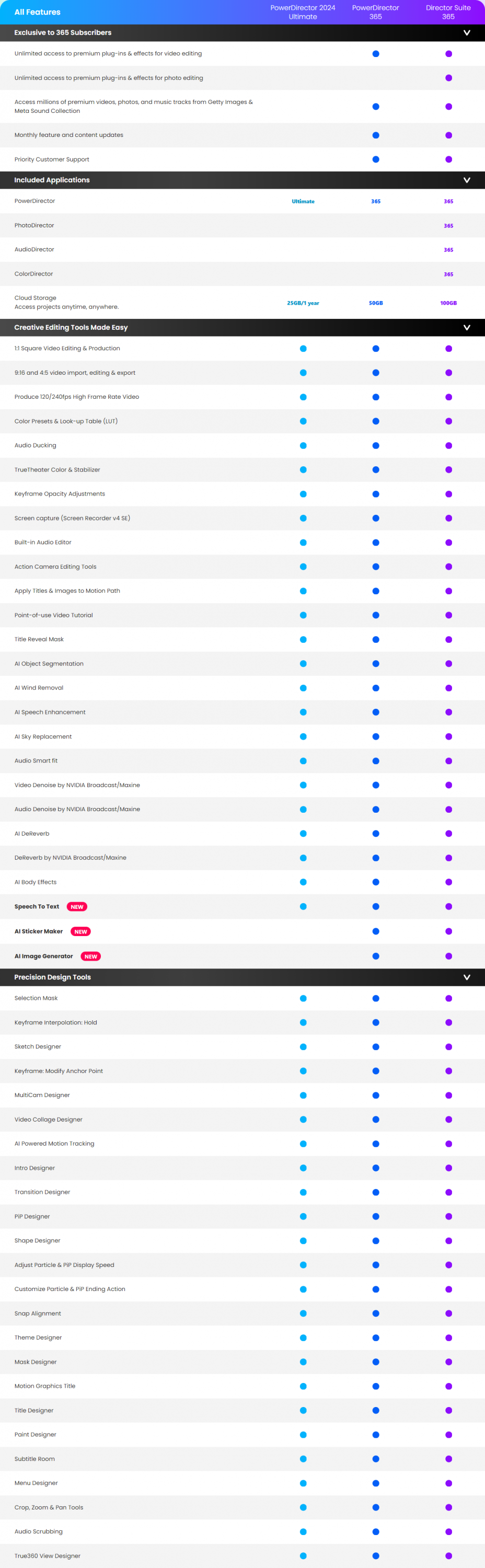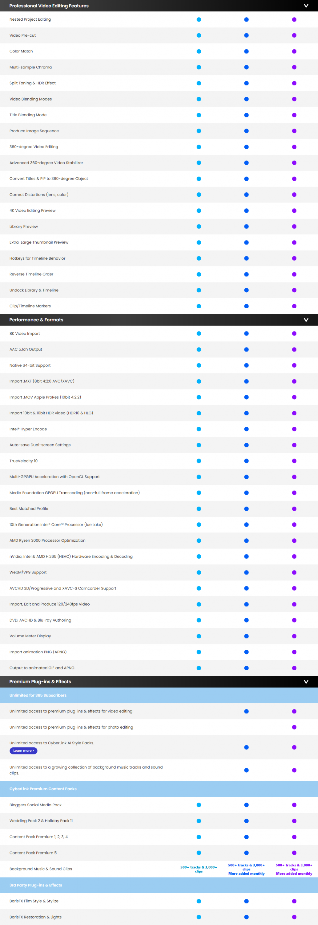 โดยที่ใน รวมชุด 4 โปรแกรมสร้างสรรค์ CyberLink Director Suite 365 นั้นนอกจากจะได้โปรแกรมไปใช้งานถึง 4 ตัวแล้ว ในช่วงเวลาที่เราซื้อลิขสิทธิ์ จะได้รับการอัปเดตฟีเจอร์ของโปรแกรมเป็นเวอร์ชันใหม่อยู่เสมอ สามารถเข้าถึงปลั๊กอิน และเอฟเฟกต์ระดับ Premium สำหรับงานตัดต่อวิดีโอ โดยมีการเพิ่มจำนวน ปลั๊กอิน และเอฟเฟกต์ใหม่ ๆ ทุกเดือน และมีเครื่องมือสำหรับงานสร้างสรรค์ให้เลือกใช้งานมากมาย อาทิ